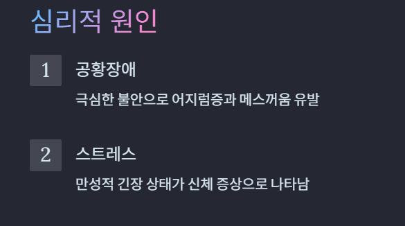 5. 심리적 원인 및 기타(공황장애, 스트레스, 환경 변화 등)
