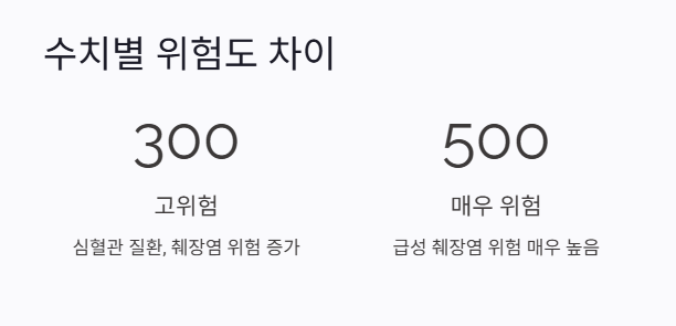 | 500mg/dL 이상 | 매우 위험 | 반드시 약물 치료 필요 |